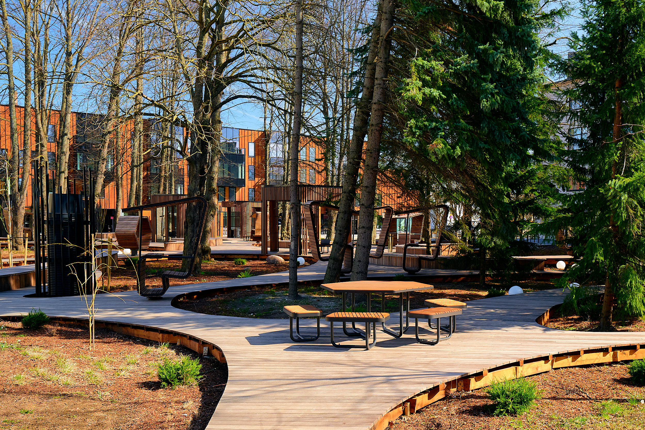 Located in the heart of the Krulli Quarter in Põhja-Tallinn, Krulli Park has been designed as a contemporary and diverse public space that combines historic industrial character, thoughtfully designed greenery, and community-supporting functions. Krulli Park creates a green center both for the residents of the quarter and for the wider urban community.