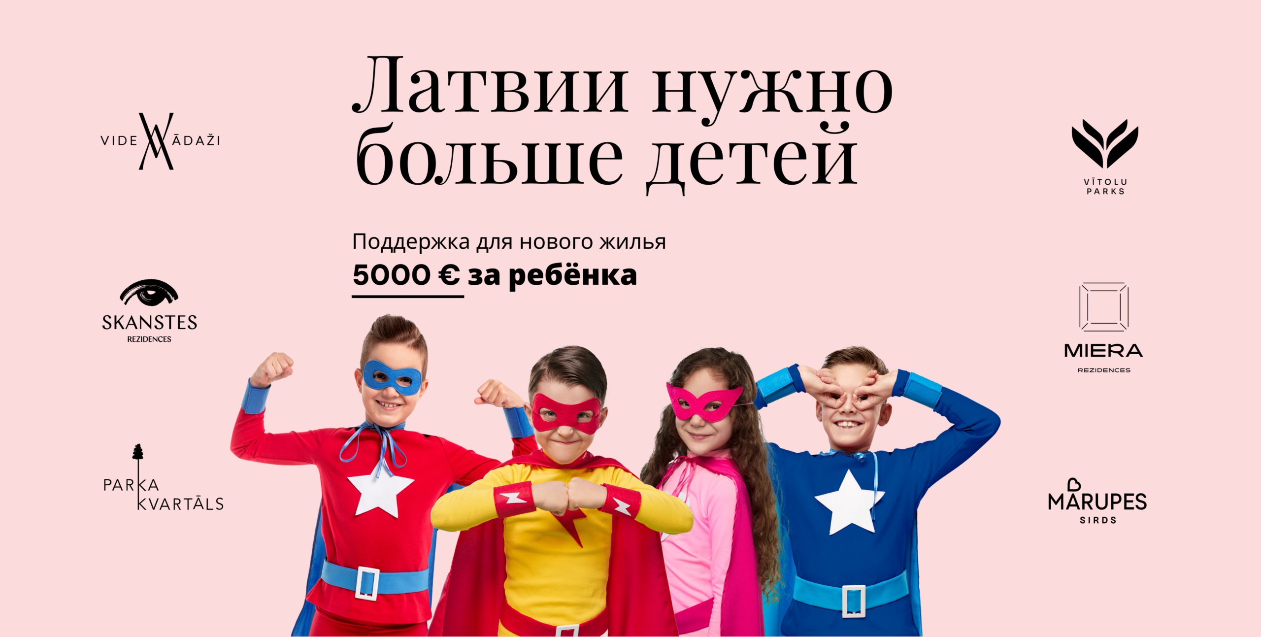 После большого общественного интереса эстонские девелоперы Invego и Reterra возобновили социальную инициативу «Латвии нужно больше детей», вновь предлагая семьям с детьми финансовую поддержку до 25 000 евро при покупке нового жилья.